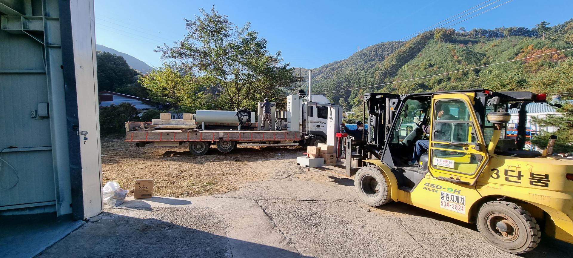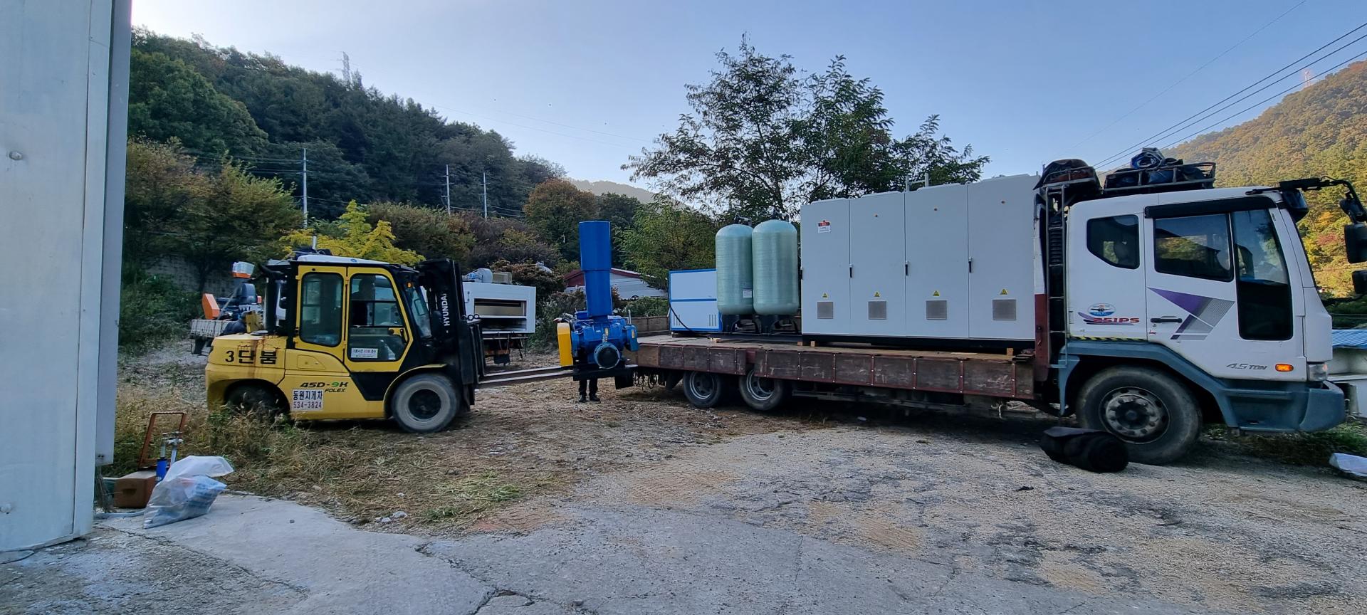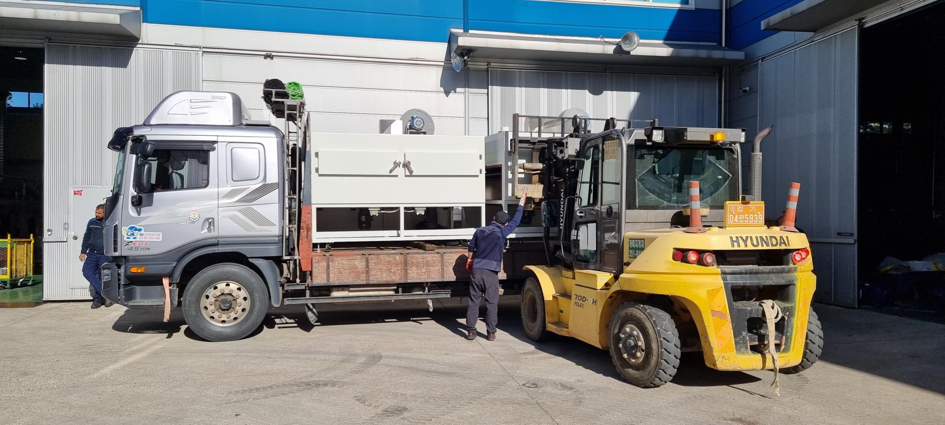 안산 사출기 3대분 이동 설치 작업
